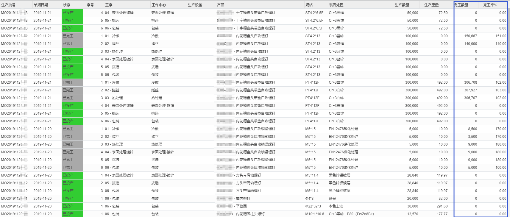 生產(chǎn)進(jìn)度:各生產(chǎn)工序、車間生產(chǎn)進(jìn)度時(shí)實(shí)查詢.作業(yè)計(jì)劃完工自動(dòng)結(jié)案