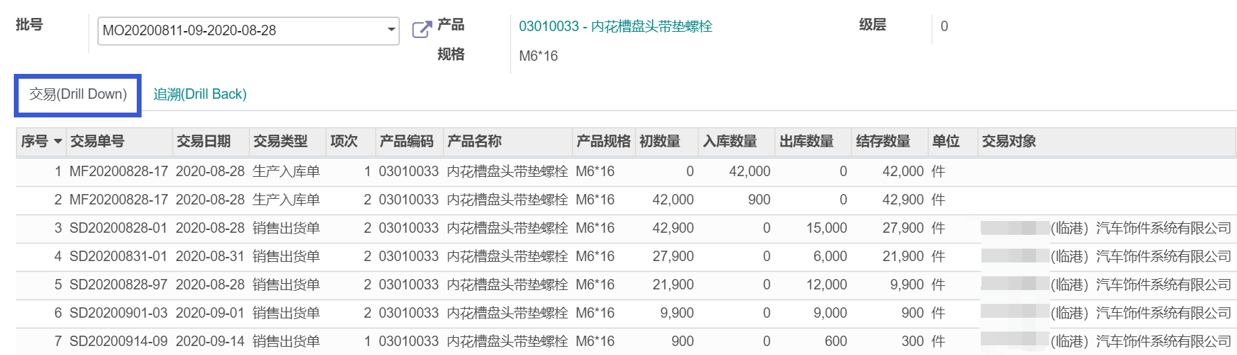 產(chǎn)品追溯:快速產(chǎn)品追溯查詢 可以追溯當(dāng)前批號的庫存交易和下級材料的相關(guān)交易及交易對象